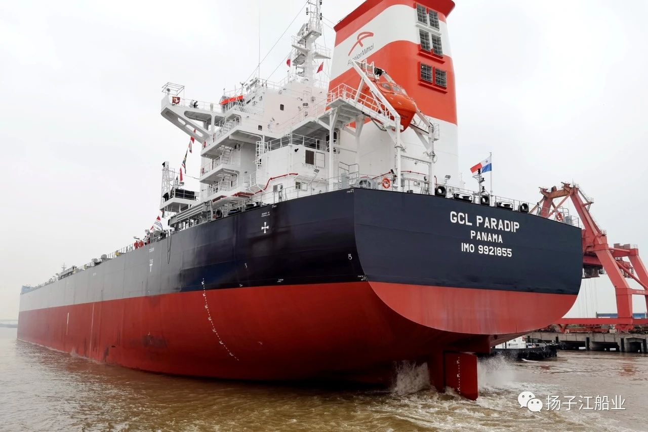 9月6日上午,扬子江船业集团子公司扬子三井造船为日本客户建造的第10艘82300吨散货船“GCL PARADIP”轮交付离厂,本船较合同交期提前56天交付船东。
