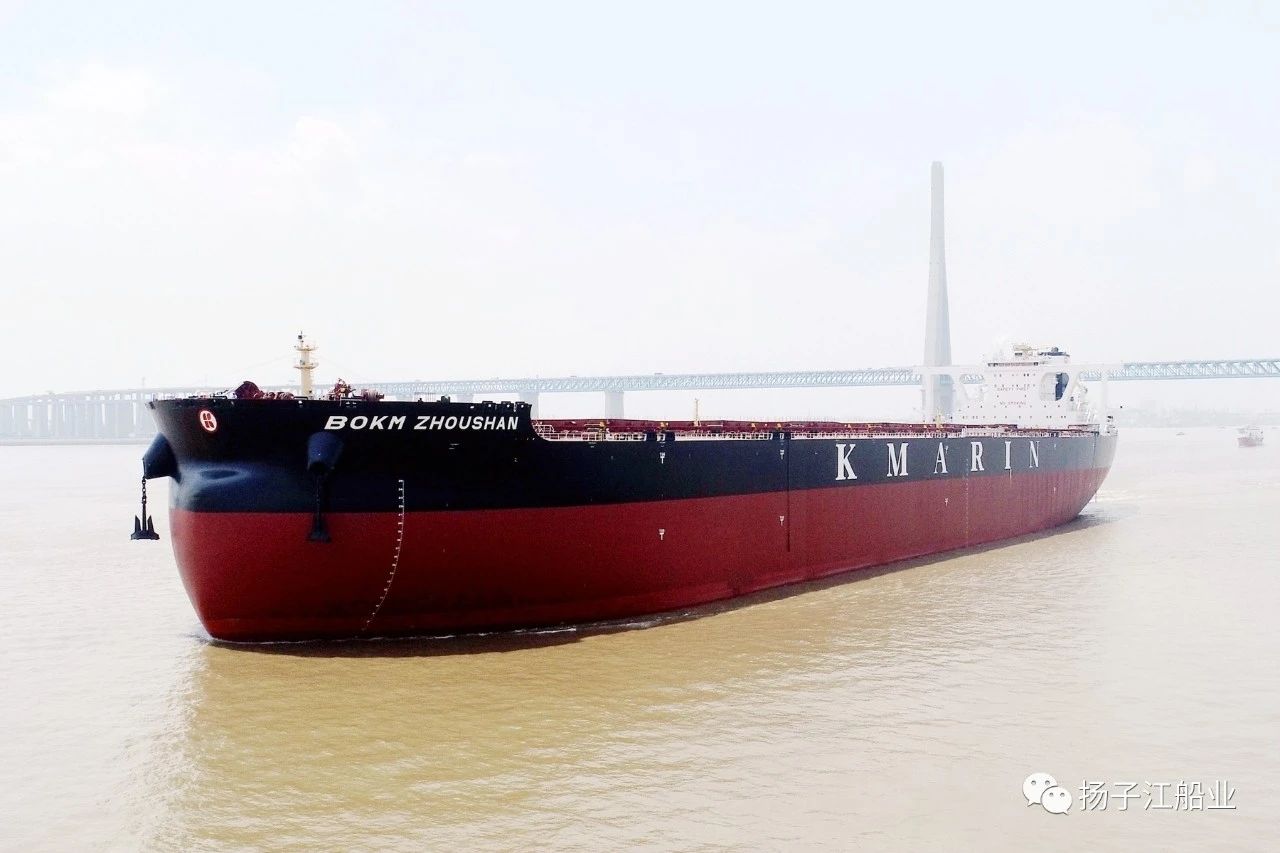 9月10日,扬子江船业集团子公司扬子鑫福造船为交银租赁和KMARIN船东建造的第二艘325000DWT超大型矿砂船,“BOKM ZHOUSHAN”轮交付。由于疫情影响,该轮采用“云”交付方式完成交船。