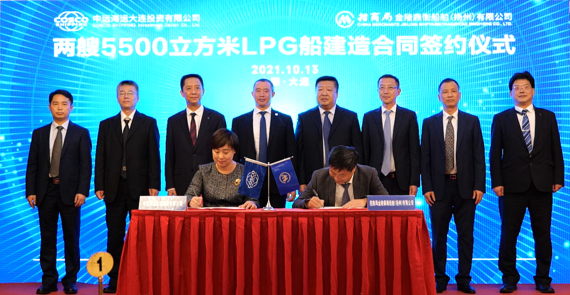 10月13日,招商局金陵鼎衡船舶(扬州)有限公司与中远海运大连投资签订两艘5500立方米LPG船订单。