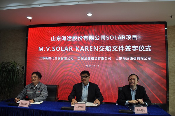 11月9日、11日,张玉永与徐涛分别代表两公司签署了26#27#50000吨IMO Ⅱ型油化品船交船文本,至此,双方合作的SOLAR项目8艘50000载重吨IMO Ⅱ型油化品船中的全部完工交付。