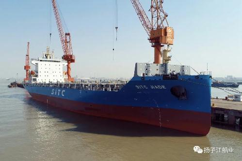 3月18日,新扬子造船为海丰国际建造的首制1800TEU集装箱船“SITC JIADE”轮电签交付。