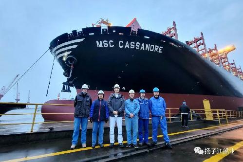 3月22日,新扬子造船为SEASPAN船东续建的第二艘12200TEU集装箱船顺利出坞。
