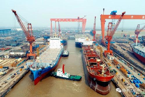 3月13日,新扬子造船1800TEU集装箱船、700FEU LNG罐箱甲板船出坞。