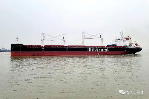 3月4日,新扬子造船为德国Vogemann船东建造的第三艘40000吨散货船“ROSTRUM AMERICA”轮电签交付。