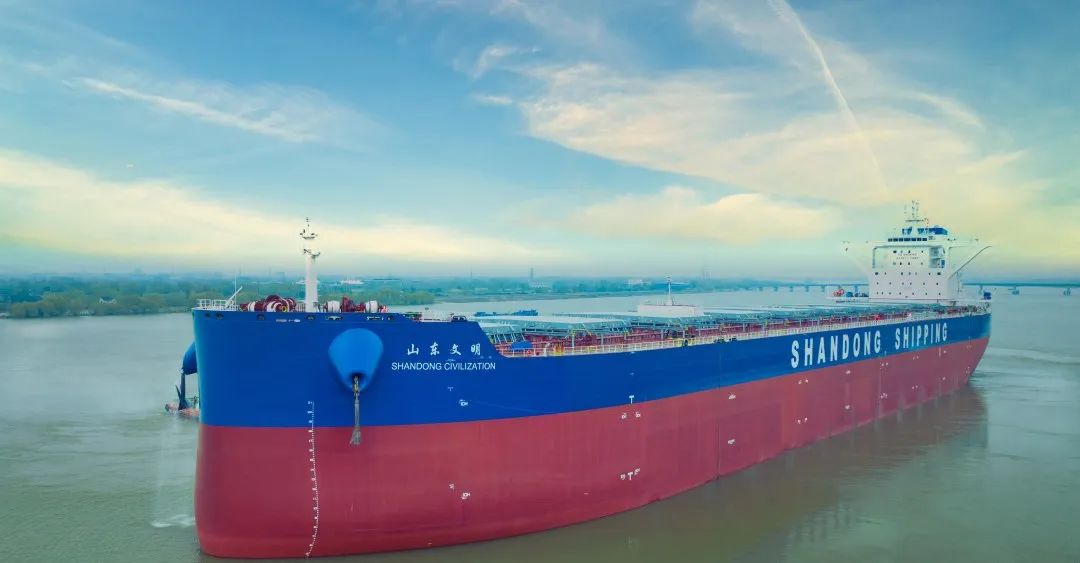 4月7日,“山东文明”轮在浙江舟山顺利交付并开启首航,标志着扬州中远海运重工为工银租赁和山东海运建造的系列21万载重吨散货船项目圆满收官。