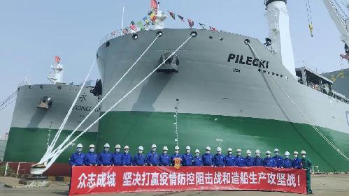 4月20日,由中国船舶旗下中船澄西船舶修造有限公司为中波轮船建造的第三艘62000吨多用途重吊船“PILECKI”轮通过视频“云交船”形式实现签字交船,提前合同期四个月交付,创造了客户价值。