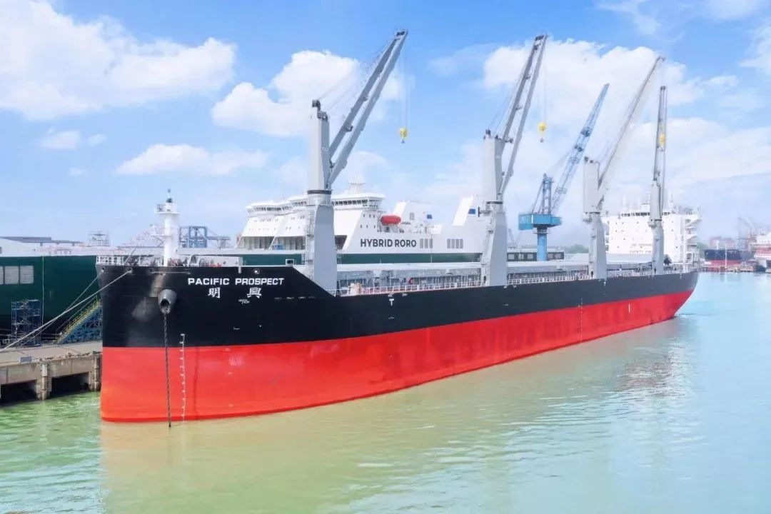 “明兴”轮系列6.2万载重吨超灵便型多用途重吊船由上海船舶设计院(SDARI)主导设计,入级CCS,船长199.9米,型宽32.26米,型深19.0米,设计航速14.4节;船舶采用CFD优化型线设计,设有5个货舱,左舷配置4台克令吊,联吊最大起吊能力可达300吨。船舶配备大直径螺旋桨推进器、低转速G型机及Fan-cap装置等节能环保设备,满足船舶能效设计指数(EEDI)PHASE 3系列国际标准;船舶安装了招商工业开发的能效管理系统,后续还将搭载招商轮船首创的IMP管理系统,是最新一代绿色环保、经济节能型多用途重吊船舶。(来源:中国船舶工业行业协会网站)