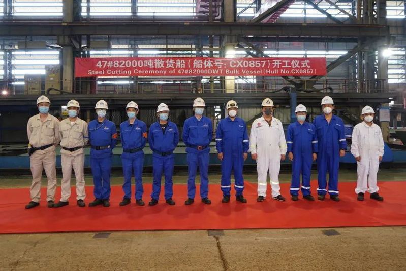 4月23日上午9:58,47号82000吨散货船生产开工,全面打响了“奋战二季度,实现双过半”生产攻坚战。(中船澄西员工之家)