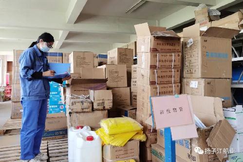 公司提前备足了口罩、防护面罩、防护服、消毒液等物资。