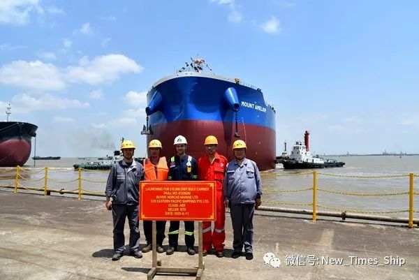 6月11日,新时代造船26#210000吨双燃料散货船、56#156500吨油船相继在海事拖轮的牵引下驶出船坞,停靠至船舶舾装码头,下水节点目标顺利完成。
