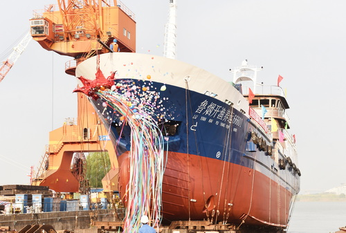 2022年11月25日,由江苏省镇江船厂(集团)有限公司为山东烟台经海海洋渔业有限公司建造的我国第一艘海洋生态活鱼运输船,顺利下水。