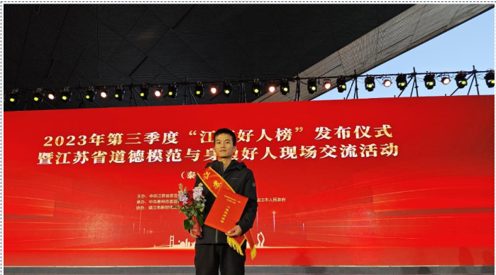 12月10日,扬州中远海运重工建造部的一名90后焊工技师石鑫,荣获由省委宣传部、省文明办、省美德基金会联合颁发的 “江苏好人”荣誉称号。