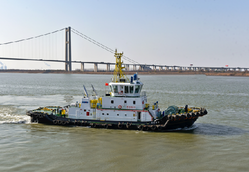 12月20日,伴随着汽笛声,国内第一艘油电混合动力全回转拖轮——“甬港拖80”缓缓驶离镇江船厂码头,启航前往宁波油港轮驳有限公司。