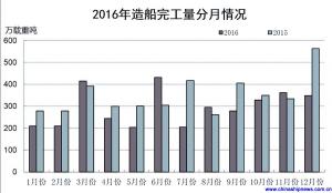 预计2017年,我国船舶工业主要经济指标有望止跌企稳,造船完工量与2016年大致持平,新接订单总量或将有所下降,年末手持订单量将低于9000万载重吨。
