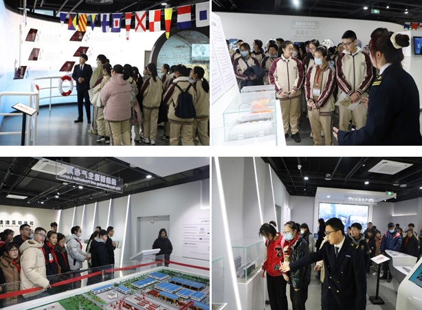 在科普志愿者的带领下,同学们先后参观了舰船科普教育基地的3个展区。从典型船厂的生产布置到大国重器的发展历程,从不同船舶的特点阐述到船舶建造的过程展示,从趣味问答到角色扮演,从观看漫游录像到VR体验,学生志愿者们一边讲解,一边向同学们提问,将枯燥的知识融入游戏和互动,寓教于乐,在欢声笑语中学习新知识。