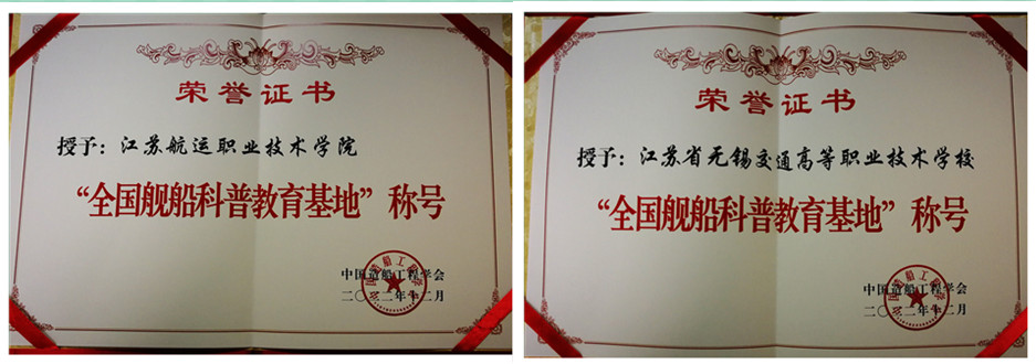 经中国造船工程学会评审认定,学会副理事长单位江苏航运职业技术学院、常务理事单位江苏无锡交通高等职业技术学校被授予“全国舰船科普教育基地”称号。该项工作是中国造船工程学会面向国内舰船与海洋工程领域开展的科普教育基地创建活动。旨在充分发挥舰船科学技术普及场馆与设施的普及功能,宣传传播舰船国防科普知识,增强社会公众对舰船与海洋工程领域发展的科学认知,不断提高全民科学素质。