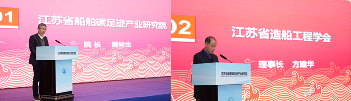 江苏省船舶碳足迹产业研究院院长黄林生和学会理事长方建华分别致辞。方建华理事长表示,我国船舶工业正处于变革关键期,面对“双碳”目标带来的历史性机遇与挑战,必须凝聚最广泛的力量,构建一个开放、协同、高效的创新联合体。用好研究院这一省级高端平台,既是响应国家“双碳”战略的主动作为,更是引领船舶行业未来发展的战略布局。并期望产业研究院聚焦标准引领,夯实产业绿色根基;强化人才支撑,培育低碳专业力量;深化协同共治,凝聚绿色发展合力。为构建海洋强国、实现“双碳”目标贡献行业智慧与力量!