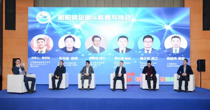 在圆桌讨论环节,主持人杨世知与黄朝俊、车马俊、周兰喜、魏夕凯、姚建伟五位船舶碳足迹领域研究专家就“碳路扬帆·智造未来--船舶碳足迹的机遇与挑战”话题进行广泛而深入的交流,并解答现场多位代表的提问。
