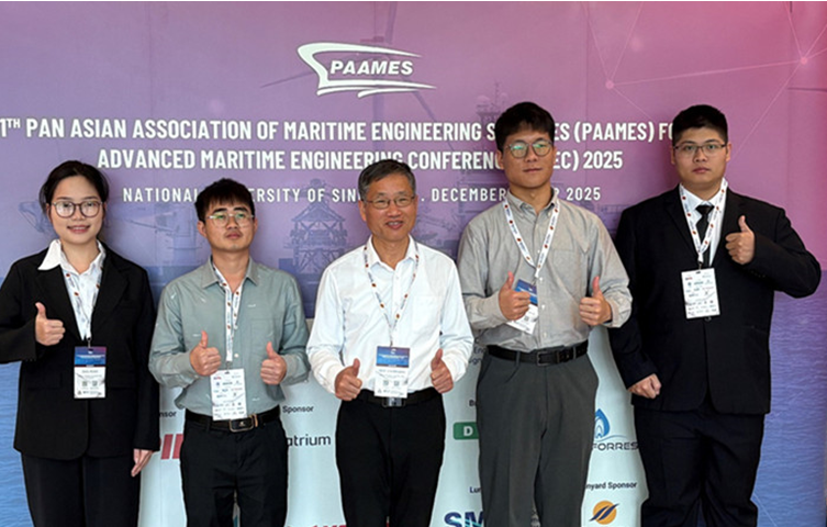 2025年12月9日-13日,第十一届泛亚海事工程学会联合会会议暨 2025 年国际先进海事工程学术会议(11th PAAMES/AMEC 2025)在新加坡召开。本次会议由新加坡造船工程学会主办,共有来自泛亚地区的200余名代表出席。学会副理事长单位江苏科技大学、中国船舶科学研究中心7位代表参加了会议。