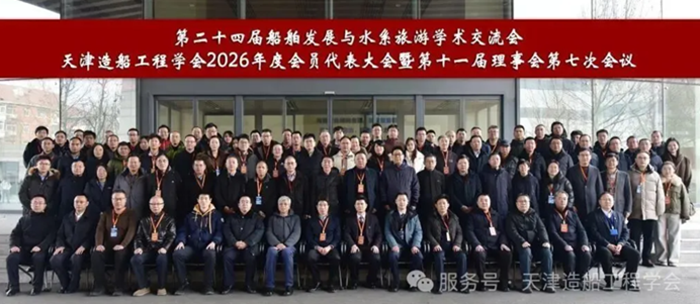2026年1月24日,由江苏、天津、北京、辽宁、浙江、安徽、重庆、上海、广东、福建等十个省市造船工程学会共同主办,中国船舶有限公司第七〇七研究所承办的第二十四届船艇发展与水系旅游学术交流会在天津成功举行。天津市科协副主席周子刚、中国造船工程学会副部长梁冠军、天津造船工程学会理事长舒东亮出席会议并致辞。来自十省市的学会组织、科研院所、专业院校、船舶制造与配套企业百余位科技工作者聚集一堂,共同展望建设旅游强国和航运碳中和背景下船艇产业与水系旅游的绿色智能转型之路。学会作为主办方之一,组织专业院校派代表参会。